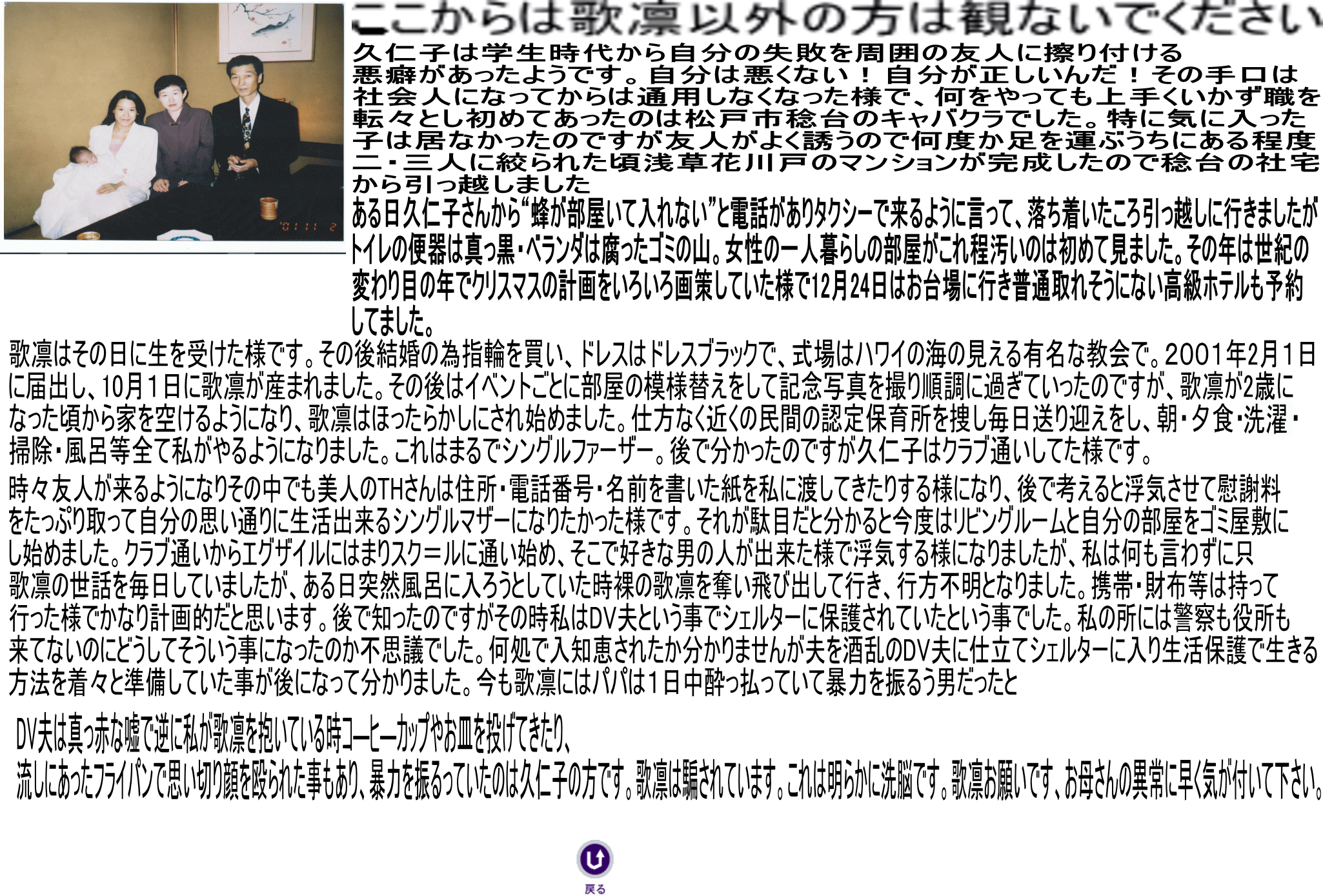 少し腑に落ちない点が1つあります。それは久仁子さんが産れ育った処の市長さんと、DVシェルターのオーナーさんの性が藤○氏という事。何か関係があるのでしょうか?